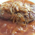 Das Fleisch (medium) hat einen kleinen Fettrand, ist dafür aber relativ gross und zart, jedoch auch etwas „grobstrukturig“. Die geschmelzten Zwiebeln und die Soße spielen geschmacklich in der oberen Liga mit, von der Menge her wird hier auch viel geboten. Die Spätzle sind ebenso nicht zu verachten, könnten aber etwas mehr und stärker im Geschmack sein. Mit Gewürzen wurde insgesamt etwas gespart, jedoch kommen dadurch die restlichen Zutaten besser zur Geltung.